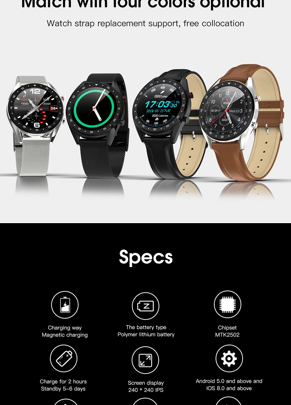 Crafted with a durable alloy and plastic case, and featuring a comfortable movable strap available in a variety of colors, the L7 Smart Bracelet combines functionality with style. Choose from classic Black, elegant Brown, bold Black Steel, or sophisticated Silver Steel to match your personal style.
